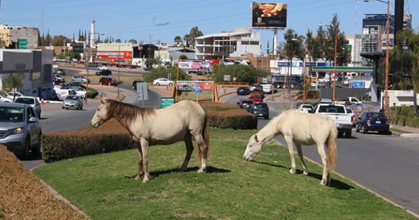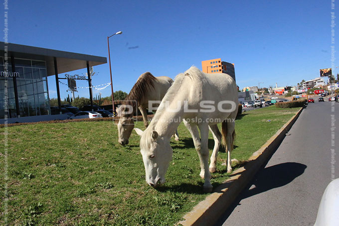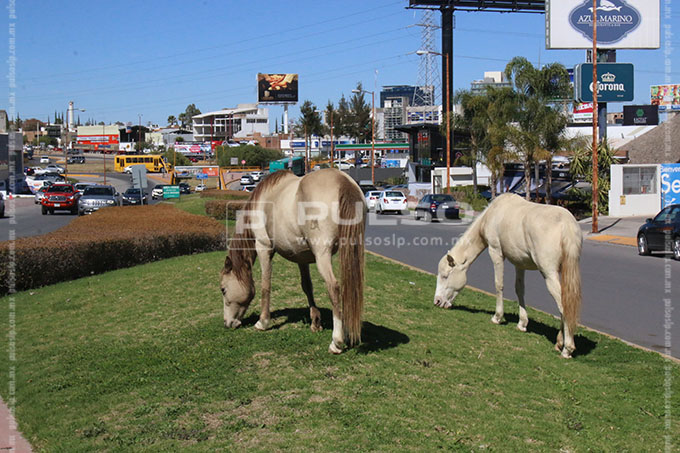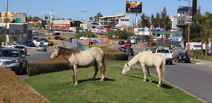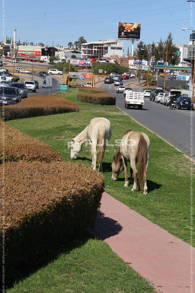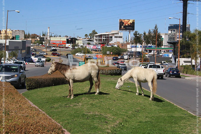 Un par de caballos utilizaron la llamada “Glorieta de la Familia” al poniente de la ciudad, para pastar, lo que en determinado momento podría representar un riesgo para los automovilistas, sin embargo, la Dirección General de Seguridad Pública Municipal informó que en estos casos no se interviene de manera directa.