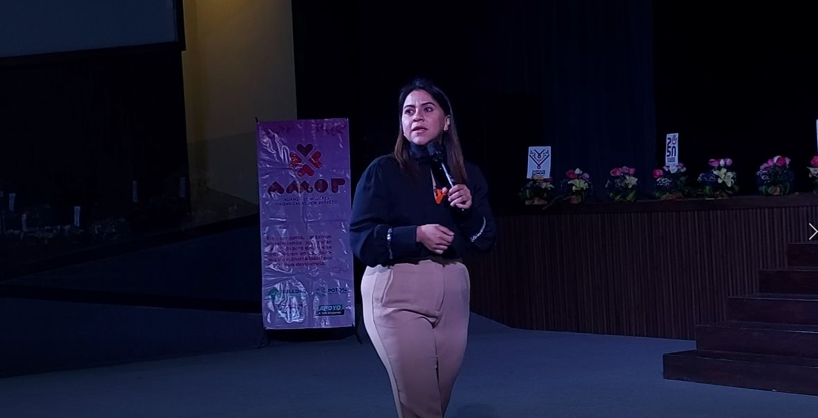 Hija de Josefina, nieta de Teresa, bisnieta de Olimpia fue así como se presentó la también defensora de espacios digitales libres de violencia para niñas y mujeres, ante el público asistente que en esta ocasión lució un tanto desolado, quizás por no haberle dado la difusión necesaria a esta actividad por parte del gobierno municipal de Soledad como del Instituto de las Mujeres del estado de San Luis Potosí.