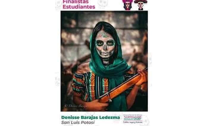 La estudiante potosina Denisse Barajas Ledezma ganó el segundo lugar en el Concurso Nacional de Disfraces "La catrina y el catrín CONALEP 2020", en la categoría de Estudiantes.