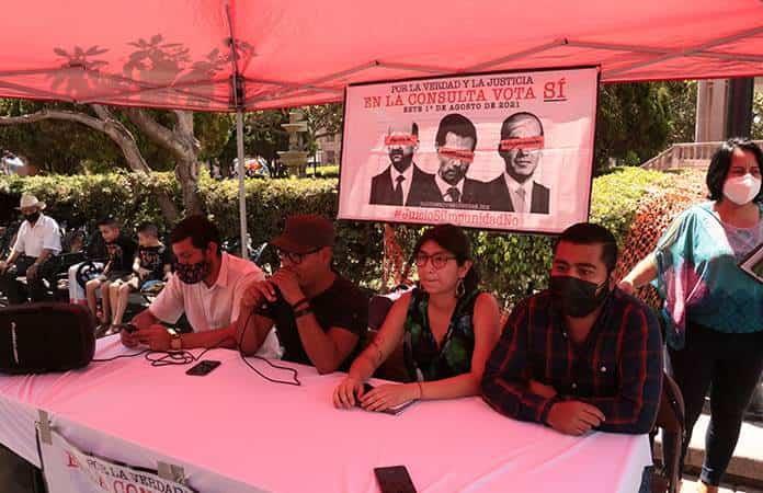 Organizadores del movimiento nacional “Juicio si, impunidad no”, conminaron a la población potosina, acudir a la Consulta Popular del 1 de agosto próximo, con el objetivo de enjuiciar a expresidentes.