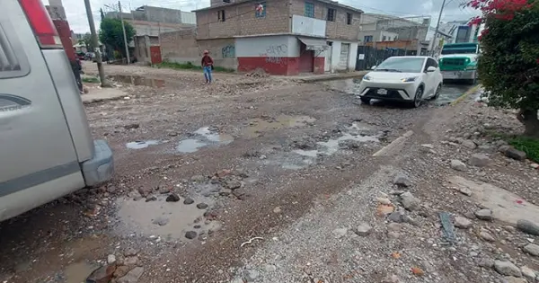 El desgajamiento de un cerro y la bajada de miles de litros de agua de San Juan de Guadalupe hacia la Avenida Juárez, depositó una gruesa capa de lodo y piedras a lo largo de la avenida, en el tramo que abarca desde la Feria Nacional Potosina hasta la Colonia Satélite.