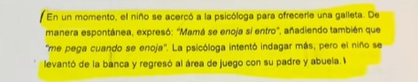 Así lo constata uno de los reportes "¿Te gustaría pasar a convivir con tu papá y tu abuelita? En ese momento, el niño mostró una actitud dubitativa, volteando a ver a su madre en búsqueda de aprobación, manifestando así cierta inseguridad emocional y respondió "No". Esta reacción resultó llamativa ya que, en convivencias previas, Luca había ingresado con entusiasmo y disposición positiva".