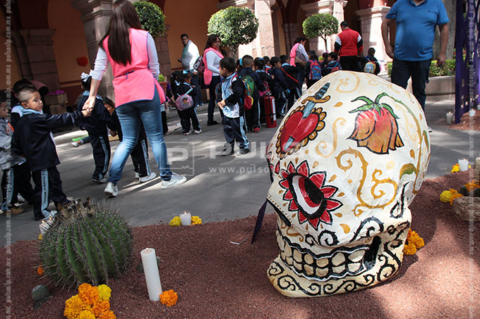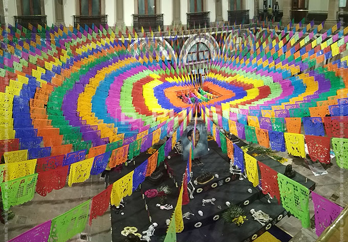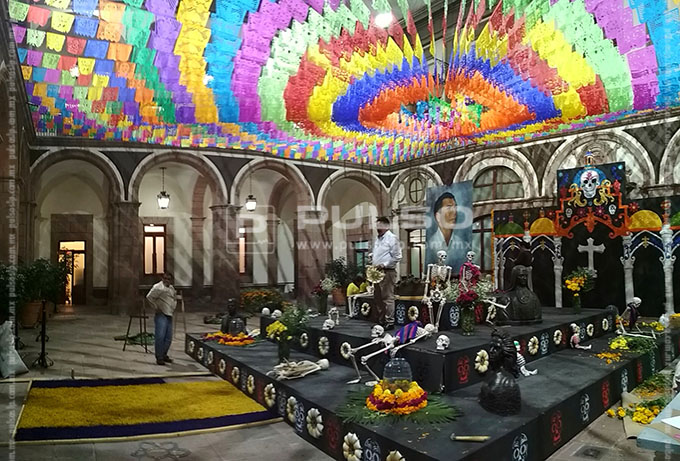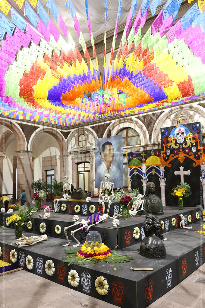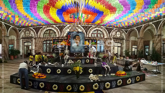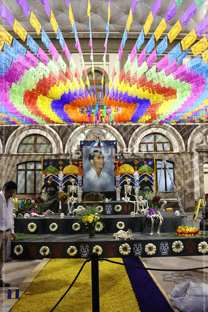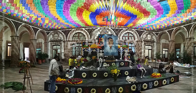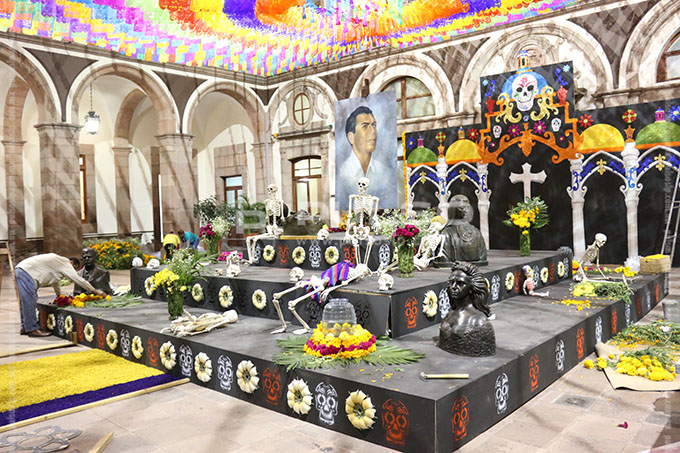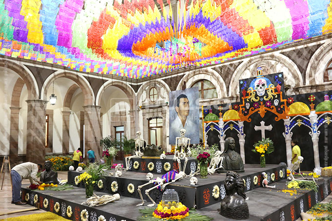 A unas horas de conmemorarse el Día de Muertos, diversos inmuebles y plazas públicas de la ciudad lucieron con la instalación de altares dedicados a diferentes personalidades.