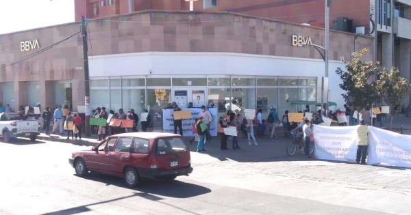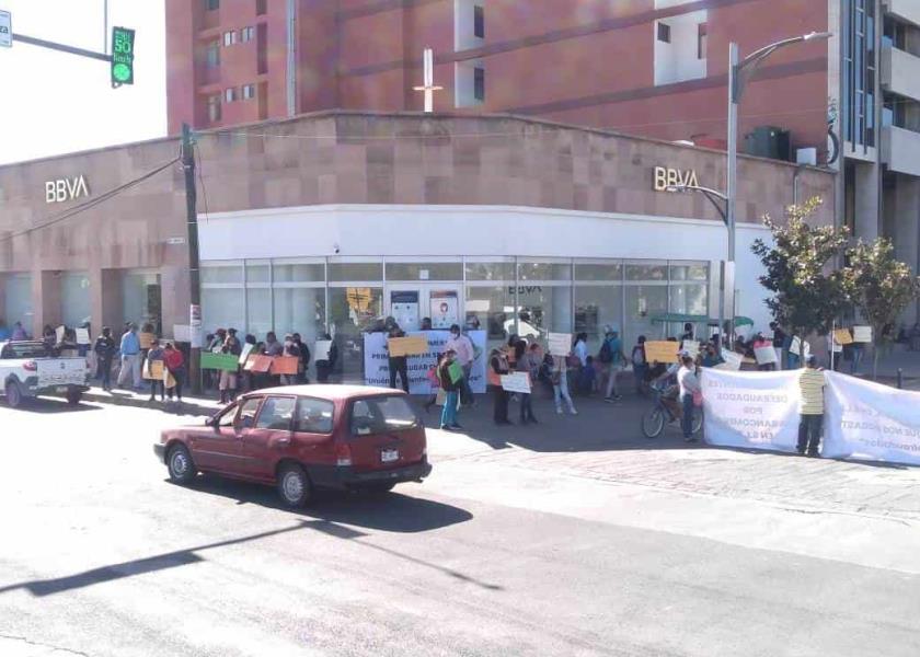 Continúan las protestas por parte de derechohabientes de la institución bancaria BBVA, a las afueras de la sucursal ubicada entre la Avenida Carranza y Uresti para exigir les sea devuelto el dinero que presuntamente les fue vaciado de sus cuentas.