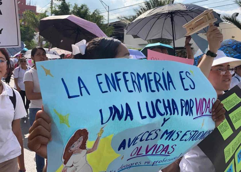 Enfermeras de todos los niveles, instituciones educativas y de salud, iniciaron este jueves una marcha desde el parque de Morales hasta la Plaza de Armas para visibilizar la falta de reconocimiento a su profesión y la incertidumbre a la que se enfrentan con el cambio de paradigma del sector, en la figura del nuevo esquema del IMSS - Bienestar.