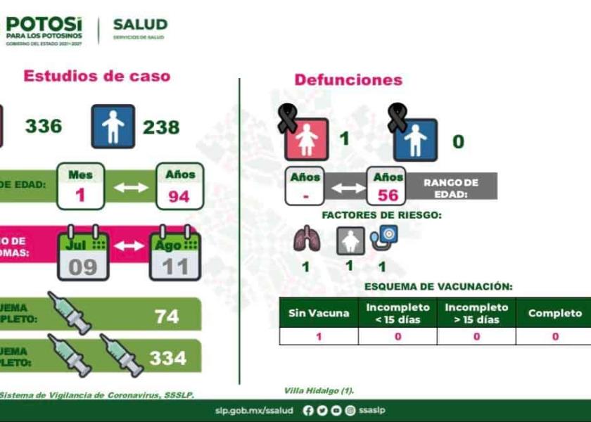 Muere por covid en SLP una mujer sin antecedente de vacunación; un bebé de un mes, entre los nuevos casos