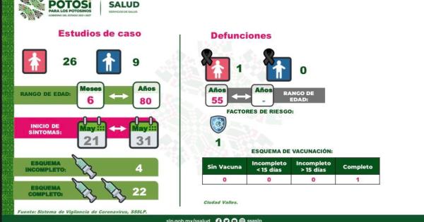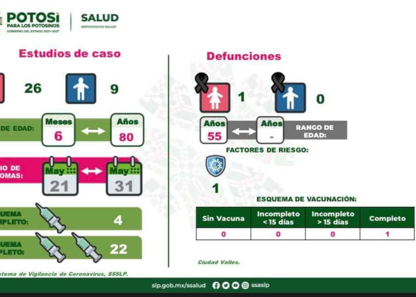 Se registra un nuevo deceso en el Estado, por lo que la cifra de muertes llega a 7 mil 553. Esta defunción, corresponde a una mujer de 55 años de edad, quien contaba con esquema completo de vacunación.