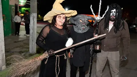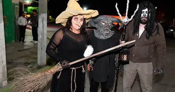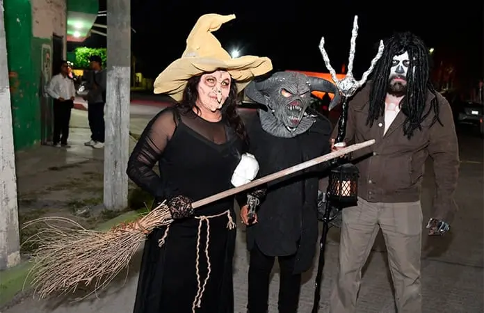 Desde las siete de la noche, el exterior de la Casa de Cultura se llenó de cientos de niños, niñas y personas caracterizadas de carniceros con sierras, seres post-apocalípticos ataviados con trajes de bioseguridad, diablos, zombies, payasos sangrientos, seres sin cabeza o descarnados, brujas, momias, catrines y criaturas terroríficas, que avanzaron lentamente en contingente hacia el jardín principal, generando asombro y terror entre familias enteras que salieron a disfrutar del espectáculo, algunos con asombro, otros entre sustos y risa.