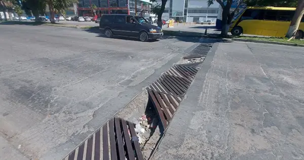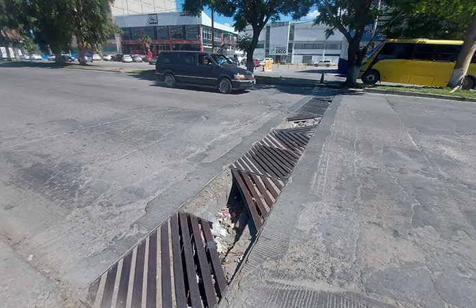 La falta de mantenimiento en las alcantarillas pluviales del municipio de Soledad de Graciano Sánchez es evidente, especialmente en calles y avenidas principales como la avenida Acceso Norte, donde algunas estructuras llevan años sin ser rehabilitadas, representando un riesgo para quienes transitan por la zona.