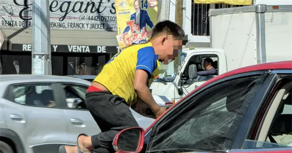 En uno de los cruceros más transitados de San Luis Potosí, un menor se gana unas monedas limpiando parabrisas entre el tráfico. La escena, cada vez más común, expone la realidad de niñas y niños que trabajan en la vía pública para salir adelante, pese a los riesgos que implica.