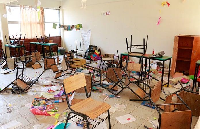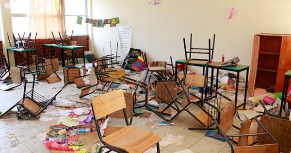 “Así se encuentra la escuela desde el año pasado y los maestros y alumnos llevaban sus actividades en condiciones de insalubridad y riesgo, ya que este inmueble fue saqueado y destruido por vándalos de la zona, en momentos de la contingencia sanitaria por el Covid-19”, denunció la señora Blanca Juárez Espinoza, tutora de uno de los niños que estudian en ese centro escolar.