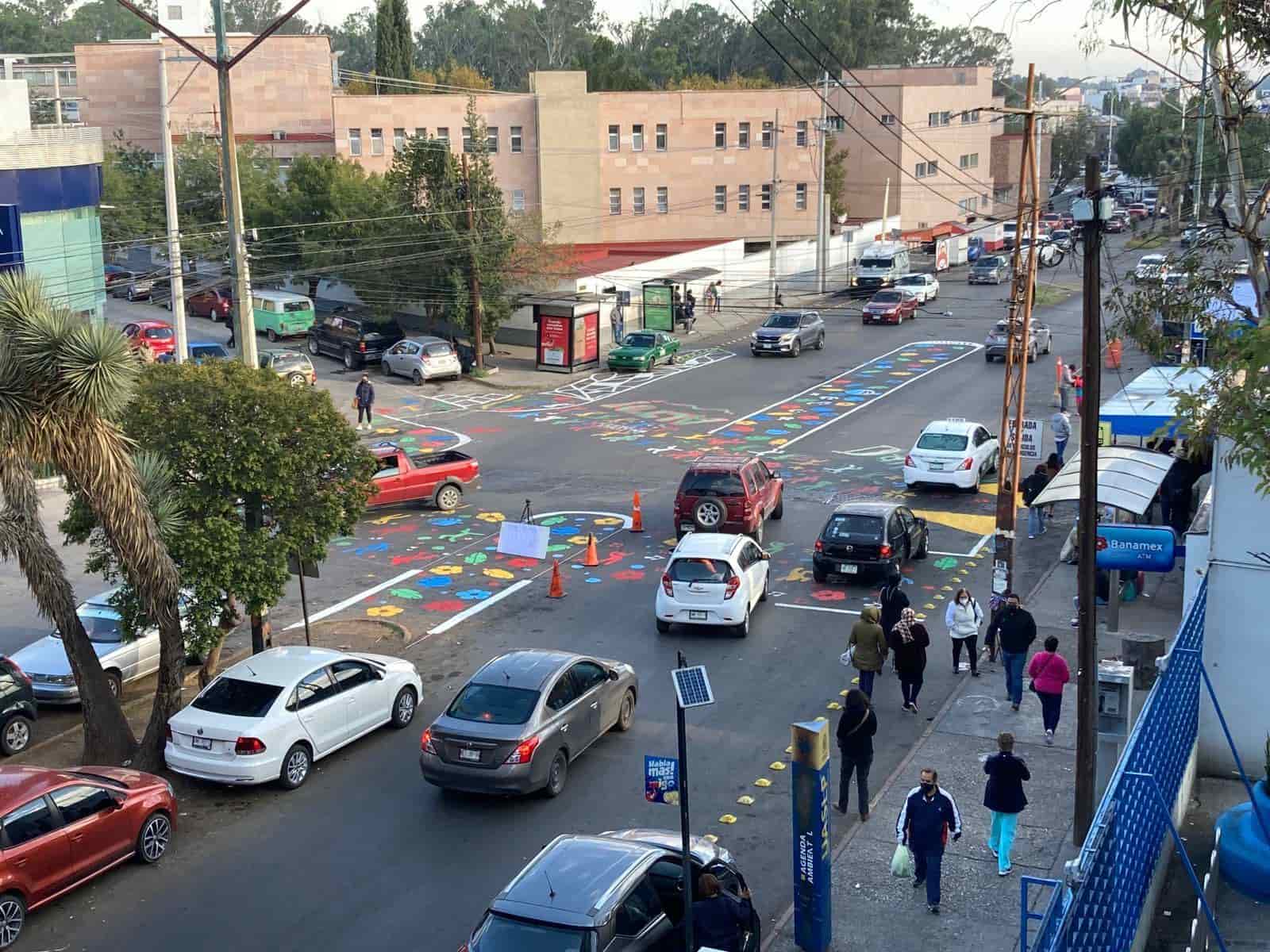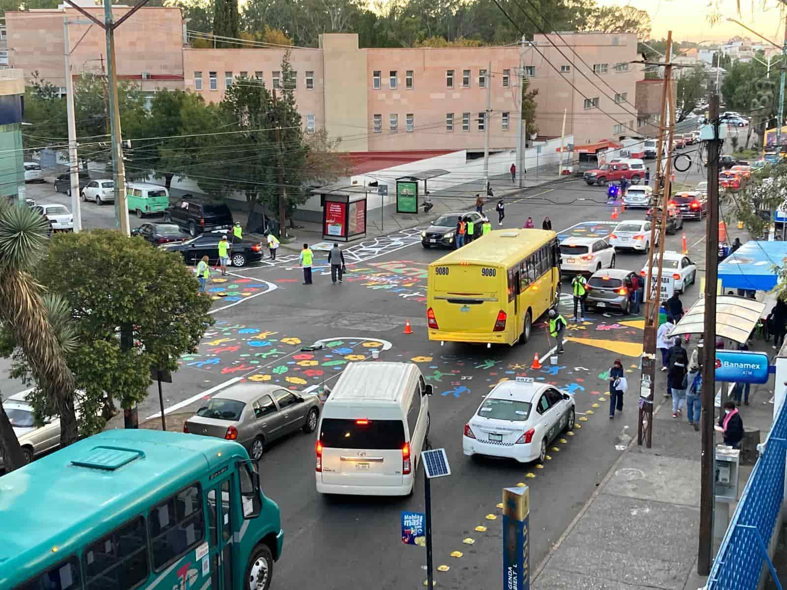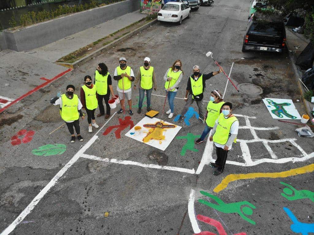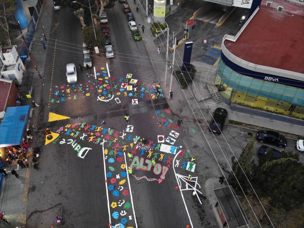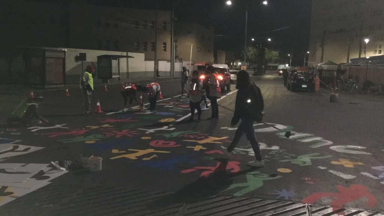El amanecer con el pintado de los cruces peatonales, incluye figuras humanas y señalización de puntos de alto total de automóviles, y fue ideado para promover el respeto a transeúntes, personas con discapacidad y ciclistas.
