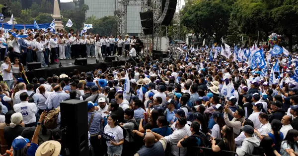 Después del evento de relanzamiento del partido, realizado en el Frontón México, decenas de panistas marcharon desde ahí hasta el monumento, donde comunicó el rompimiento de su alianza con el PRI y la apertura a las candidaturas ciudadanas.