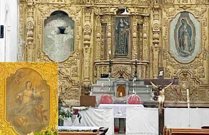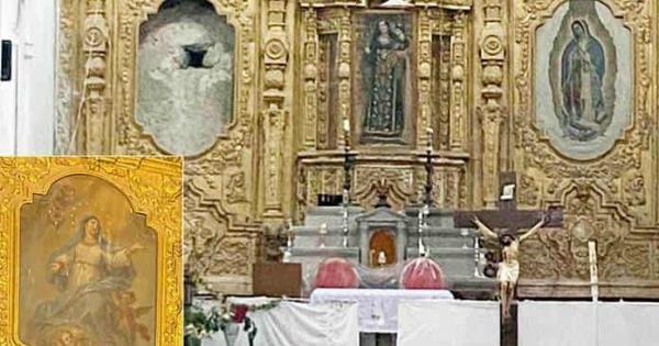 Según su información, los mayordomos del templo en funciones se percataron la mañana del domingo que la puerta principal estaba abierta y al entrar, se dieron cuenta de que la pintura de Nuestra Señora de la Asunción había sido sustraída del retablo principal, dejando expuesta la pared en la que se recarga el retablo.