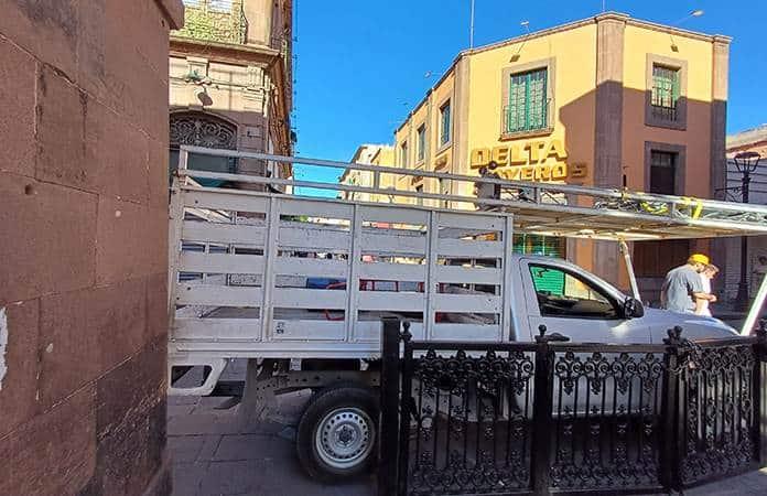 En el cruce de la Calle Madero, suelen obstruir la circulación camionetas o automóviles de proveeduría a restaurantes, o que descargan papelería e insumos para el Palacio de Gobierno o el Congreso del Estado.