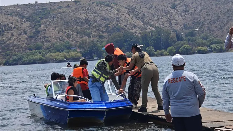 Autoridades estatales, municipales y federales desplegaron un operativo de prevención y vigilancia en la presa Damián Carmona, en Mexquitic de Carmona, ante el incremento de visitantes durante la temporada vacacional.
