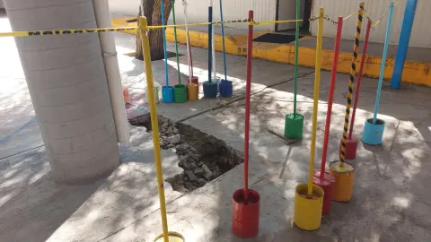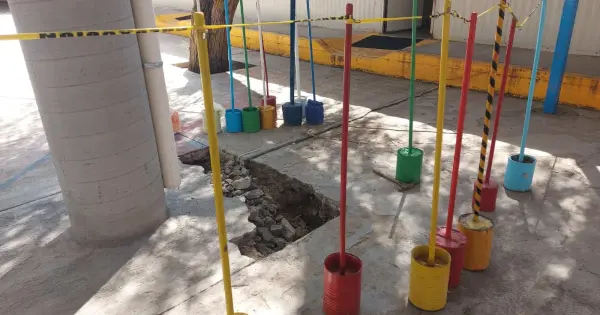 Asimismo, informaron que recientemente se detectó un hundimiento en el patio central, muy cerca de uno de los pilotes que sostiene el techado, lo que podría comprometer la estructura. Debido a ello, las actividades escolares permanecen suspendidas desde hace más de una semana.