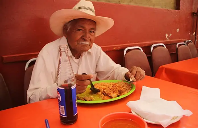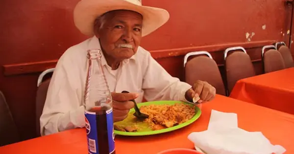 Manuel Ramírez, padre de familia y papá de un papá, fue invitado a comer fuera de la casa, y encontró un lugar en el mercado República, donde disfrutaría de un bistec de res con frijolitos.