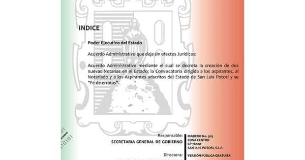 El veintitrés de junio pasado se publicó en el Periódico Oficial el acuerdo administrativo mediante el cual se decretaba la creación de nuevas notarias. Entre junio y julio se hicieron públicas las convocatorias dirigidas a los aspirantes al notariado y a los notarios adscritos que estuvieran interesados en participar en los exámenes por oposición para alcanzar la titularidad de la Notaría Pública Número Uno con residencia en Tancanhuitz; la Notaría Pública Número Treinta y Nueve con residencia en la capital San Luis Potosí y la Notaría Número Tres con residencia en Villa de Reyes.
