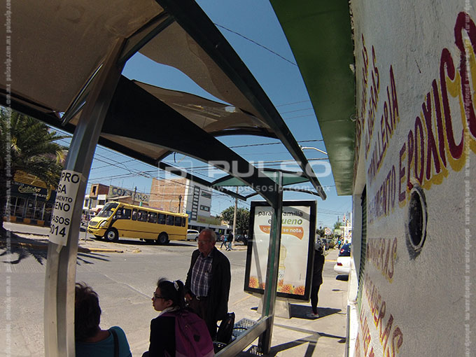 De la mayoría de los parabuses instalados en la ciudad para resguardar del sol y la lluvia a los usuarios del transporte urbano que esperan una unidad, ya solo quedan las estructuras de soporte porque han perdido parcial o totalmente los techos de acrílico. Además, han sido vandalizados y pintarrajeados.