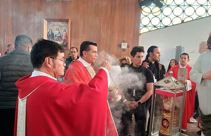 Con un recorrido de pocos kilómetros, y una valla humana desde la Catedral, las reliquias de San Judas Tadeo llegaron a la parroquia de Nuestra Señora de los Remedios (Tequis), donde fueron recibidos por feligreses para participar en una misa inicial encabezada por el párroco Rubén Pérez Ortiz.