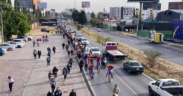 Mas de 5 mil de peregrinos, a los que se sumarán otros en las próximas horas en diferentes comunidades, van de nuevo a San Juan de los Lagos, un recorrido en el que les esperan diez días de sacrificio, de caminar, de orar y de pedir milagros por ellos y sus seres más cercanos. A las 12 del día les espera un encuentro con habitantes de Escalerillas.