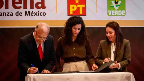 En un hotel de la Ciudad de México, los líderes de estos tres partidos: Luisa María Alcalde, presidenta nacional de Morena; Karen Castrejón, dirigente nacional del Partido Verde; y Alberto Anaya, líder vitalicio del Partido del Trabajo, aseguraron que "por encima de cualquier interés de partido, estará el interés de México y del proyecto de nación".