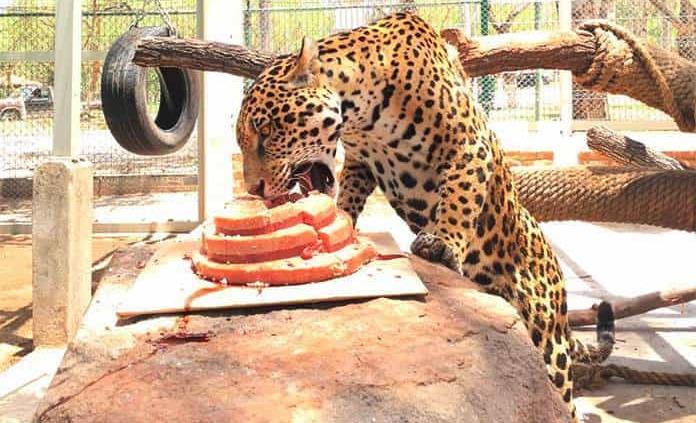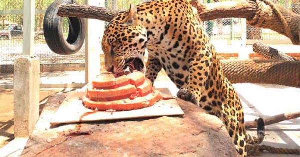 Con un pastel de carne, una piñata con motivos en forma de animales y leyendas iguales a las usadas para las celebraciones de los humanos, personal del parque Tangamanga I celebró el cumpleaños número tres de “Pazum”, el jaguar que encanta a los niños.