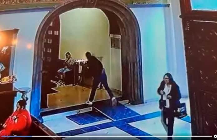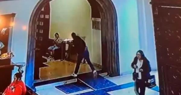 Según se aprecia en los videos compartidos por el funcionario de la iglesia, el desconocido ingresó por la puerta principal, de prisa y sacó de su mochila una gran piedra que arrojó contra la imagen a pesar de encontrarse frente a ella algunos feligreses. Tan pronto como entró se retiró.