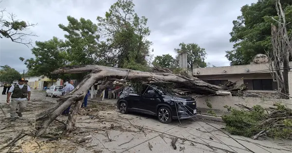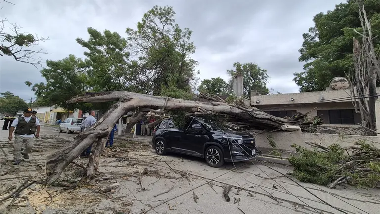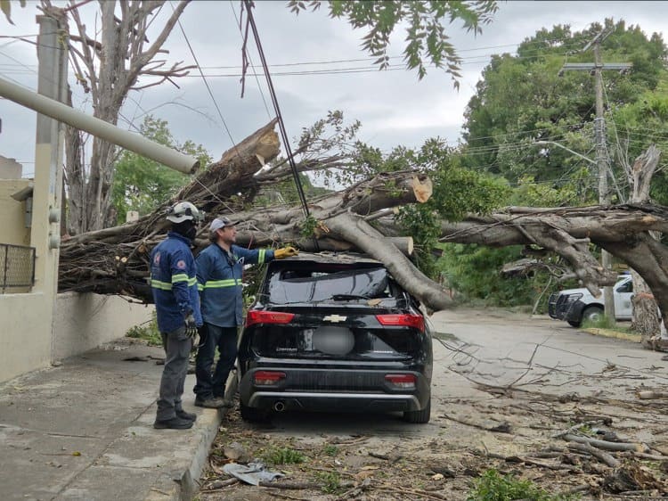 Además de ese desperfecto, hubo dos caídas de árboles, uno de ellos en el cruce de Pedro J. Méndez y Bolivia de la colonia Cuauhtémoc cayó encima de una camioneta, aunque no hubo reportes de heridos.