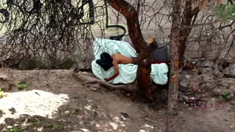 Ayer sábado, una persona fue vista debajo del puente de la avenida Constitución sobre el bulevar Españita, tendido boca abajo sobre lo que parecía ser un mueble viejo cubierto con sábanas o algún tipo de manta. La persona estaba con el torso desnudo y una prenda de color rojo o similar como única vestimenta.