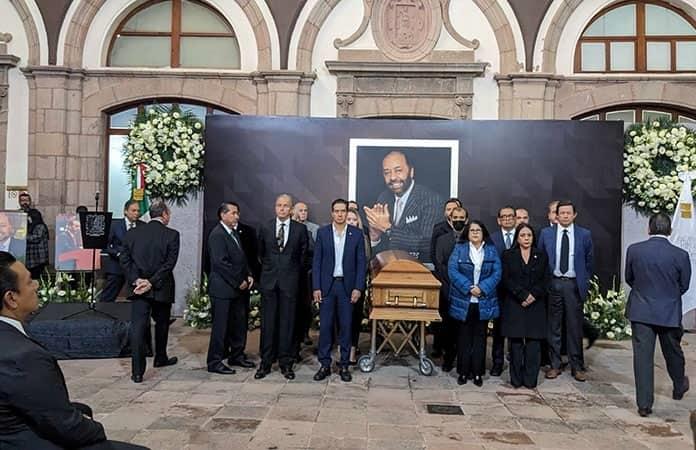 Con el cuerpo presente en el recinto del gobierno estatal, servidores públicos de todos los niveles montaron guardias de honor mientras la vida del exgobernador fue recordada con un video y con una serie de discursos.