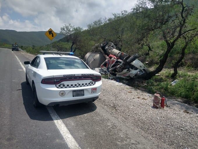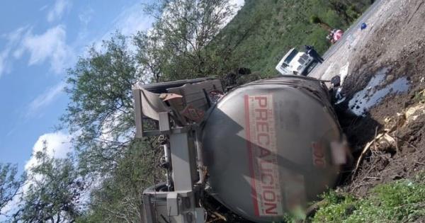 SAN LUIS POTOSÍ, SLP., julio 10 (E UNIVERSAL).- La tarde de este sábado se registró la volcadura de una pipa cargada con metanol en el kilómetro 18 de la carretera 80, tramo el Huizache-Ciudad del Maíz, con un saldo de un hombre muerto y uno más lesionado.