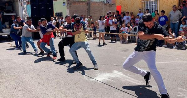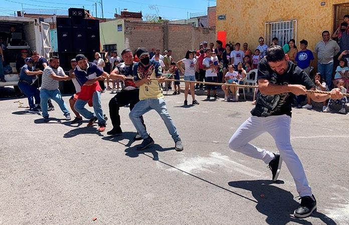 A unos kilómetros de ahí en las colonias Centenario, San Luis Rey y Santa Fe, los habitantes convirtieron las calles en una celebración con distintas competencias como carreras de costales y una de las más aclamadas, estiramiento de cuerdas.