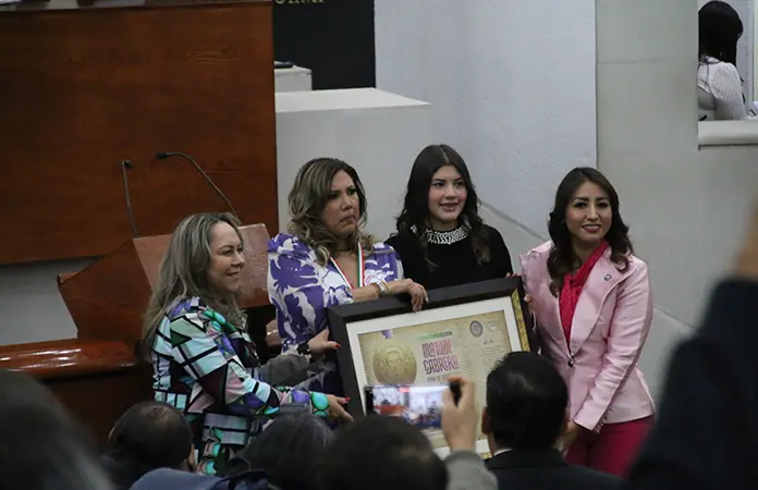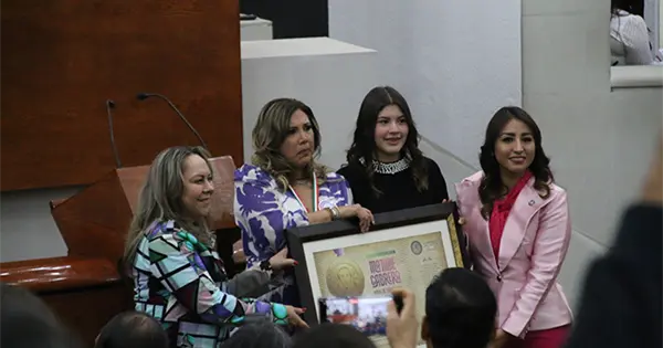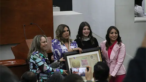 Carla Reyes García, activista potosina que ha impulsado la visibilización de la violencia vicaria, recibió la presea Matilde Cabrera Ipiña de Corsi 2026 en el Congreso del Estado, en un contexto donde este tipo de agresión sigue afectando a miles de mujeres en el país.