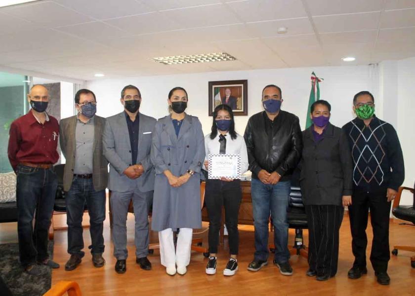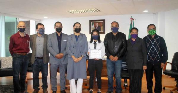 La dirección general del Colegio de Bachilleres de San Luis Potosí entregó el reconocimiento del primer lugar en la rama femenil en el primer torneo estatal de ajedrez en línea CONADEMS 2021 a la alumna de plantel 28, Ángela Minerva Salazar Chávez.