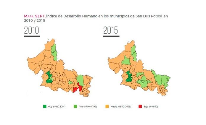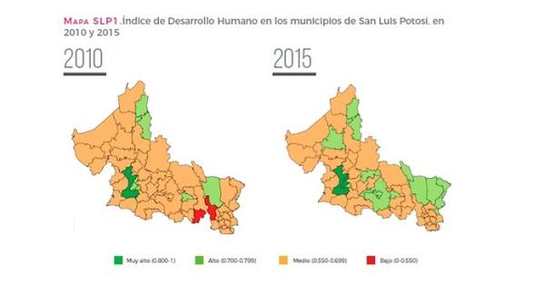 El estudio señala que el 35 por ciento de los potosinos vivían en 41 municipios con desarrollo humano medio. Otras quince localidades presentaron un desarrollo alto y sólo dos, muy alto.