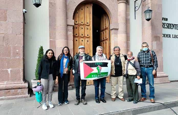 Integrantes del comité, entre ellos el exdirigente estatal de Morena, Sergio Serrano Soriano, entregaron a los diputados de Morena, Partido Verde y Partido del Trabajo una petición para la elaboración de un Punto de Acuerdo que exhorte al presidente Andrés Manuel López Obrador a promover el reconocimiento del Estado Palestino Libre y replantear la relación de México con el Estado de Israel.