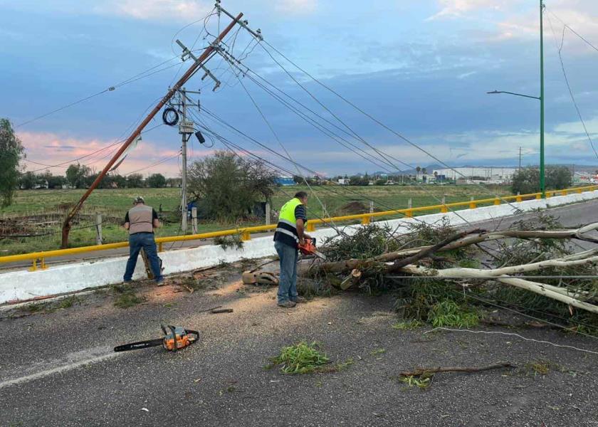 En el marco de un operativo especial, se atendió la caída de un árbol de grandes dimensiones en la colonia San Felipe, donde se colaboró con CFE para el retiro de arbusto de los cables de alta tensión; en la misma colonia, en Camino Antiguo a Soledad se retiró otro árbol.