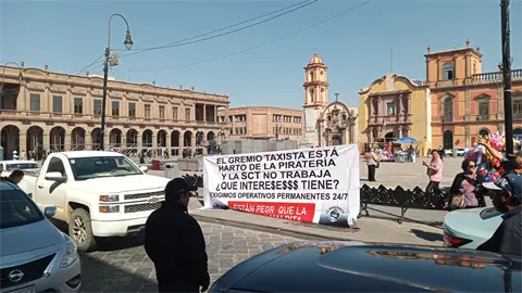 Sin alguna autoridad visible en la zona, un grupo de taxistas se manifiestan en un carril de Venustiano Carranza en contra de la secretaria de Comunicaciones y Transportes (SCT), Araceli Martínez Acosta.