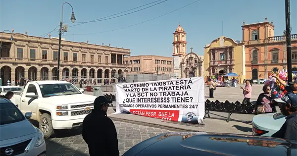 Taxistas bloquean vialidad en Fundadores; retienen a 'Ubers'