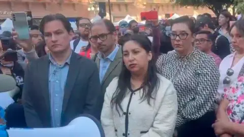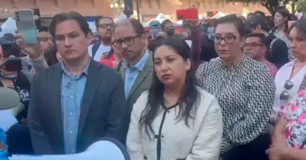 Los manifestantes exigen la renuncia del rector Alejandro Zermeño Guerra tras incidente en Plaza de Armas.
