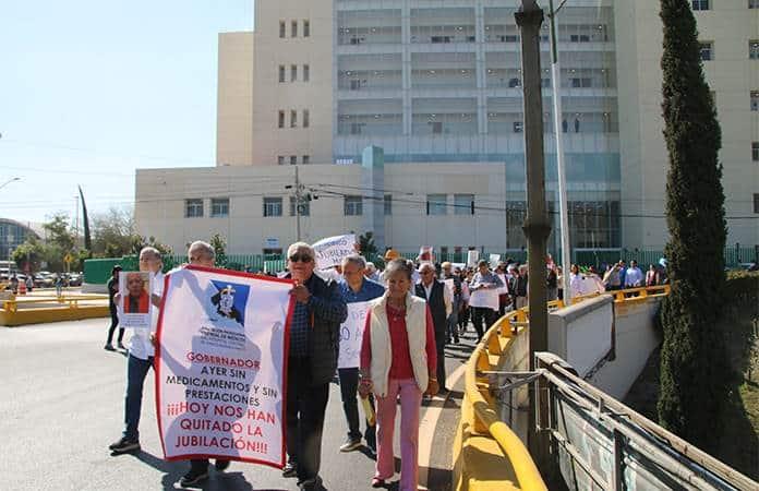En el limbo y la incertidumbre se encuentran los jubilados del Hospital Regional de Alta Especialidad "Ignacio Morones Prieto" (antes Hospital Central), quienes ayer por la mañana, acompañados de médicos en activo, trabajadores y estudiantes, realizaron una protesta bloqueando la glorieta González Bocanegra, tras acumularse ya tres quincenas sin pago.