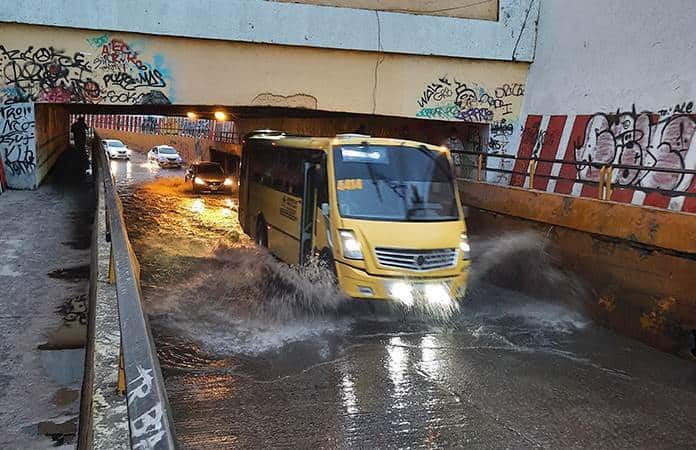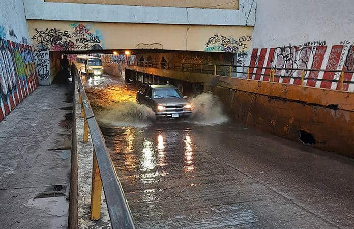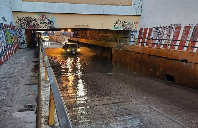 Una vez más el puente Manuel José Othón está cubierto de agua debido a la lluvia que cayó la tarde de este martes 28 de septiembre.