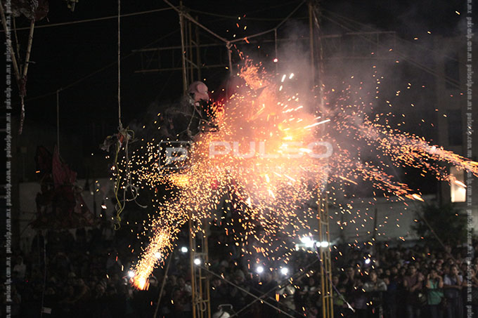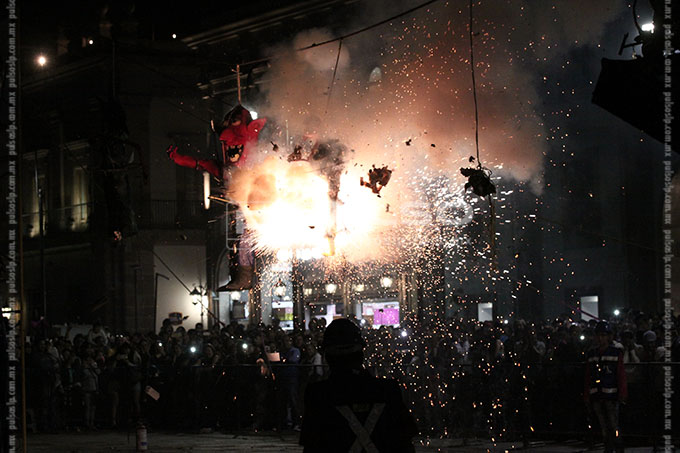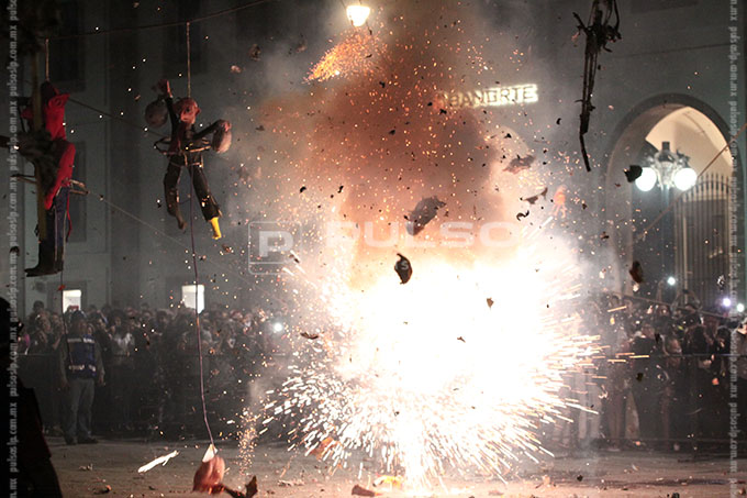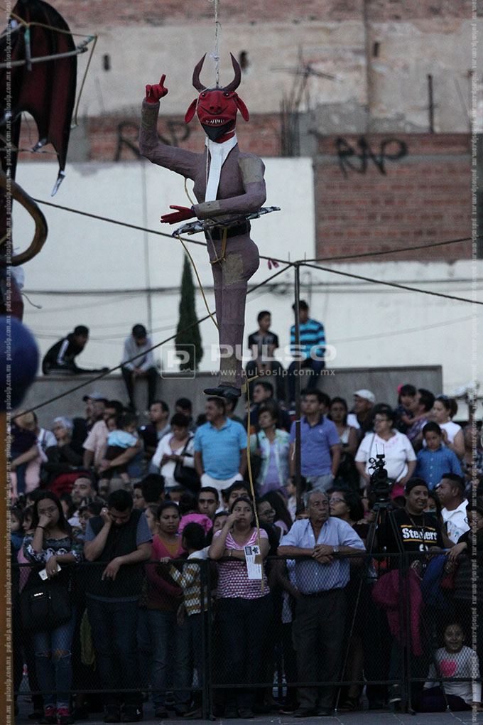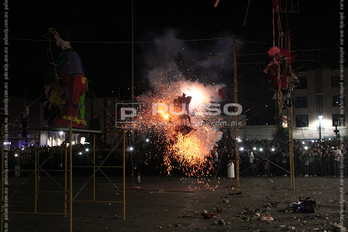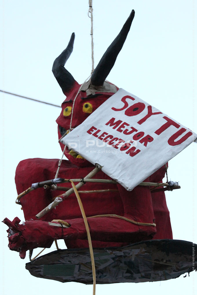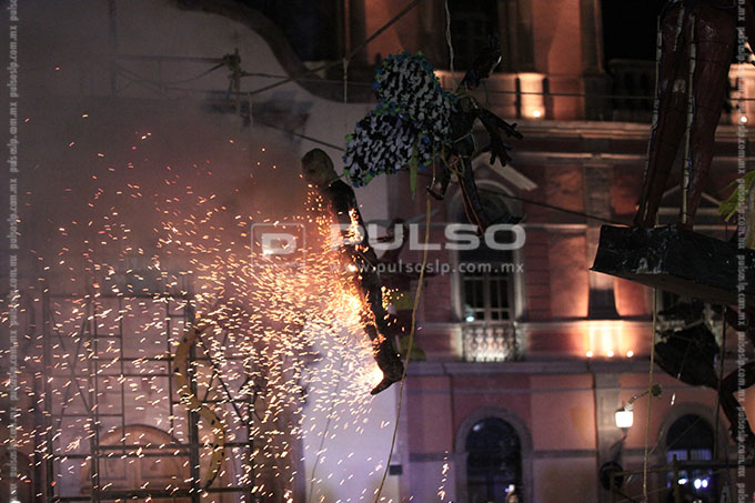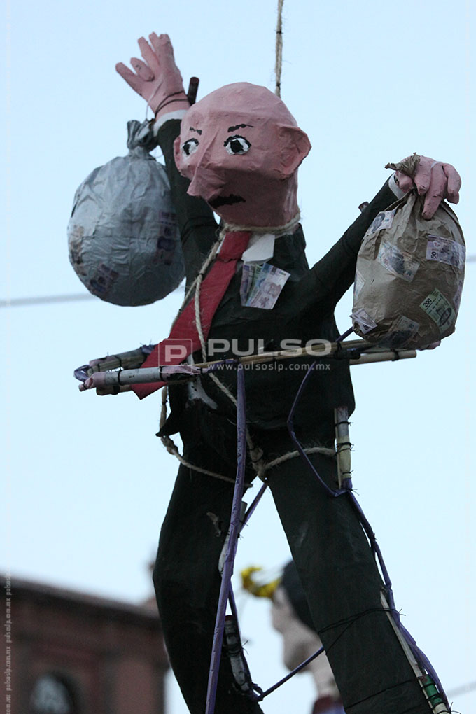 “Enrique Peña Nieto”, “Salinas de Gortari con sus bolsas de monedas”, el “Chapulín Colorado mentiroso”, “El muro de Trump”, “La guerra nuclear”, “La corrupción” y las “Desapariciones en SLP”, fueron algunos de los personajes calcinados ayer por la noche del Sábado de Gloria o Sábado Santo, en la quema de Judas realizada en la plaza de Los Fundadores.