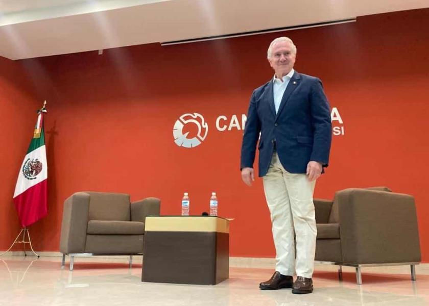 Invitado de manera conjunta por legisladores federales, el alcalde Enrique Galindo Ceballos y regidores de la capital, así como presidentes de cámaras empresariales potosinas, el actual presidente de la Mesa Directiva de la Cámara de Diputados federal, acudió al auditorio de la Cámara Nacional de la Industria de la Transformación (Canacintra) a exponer su conferencia "Rescatemos México".