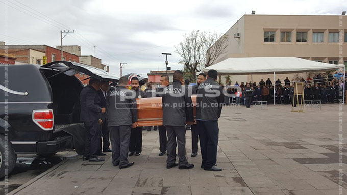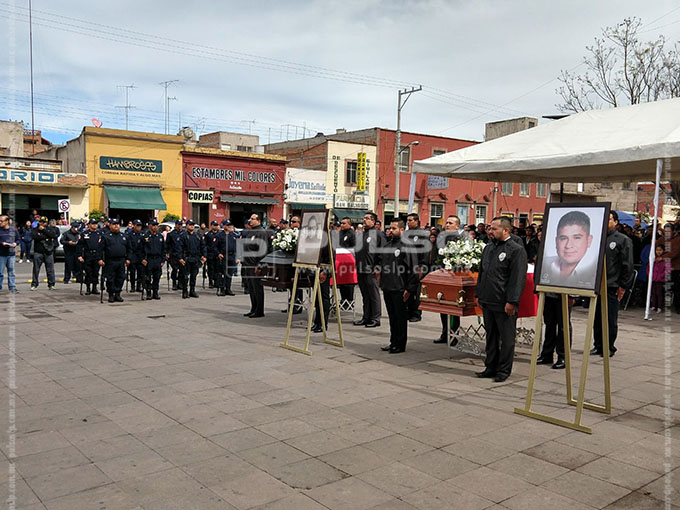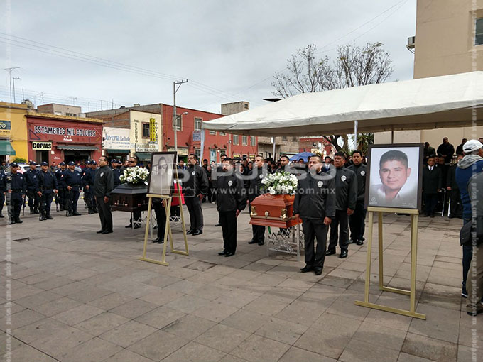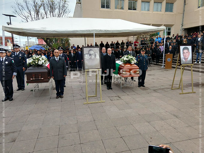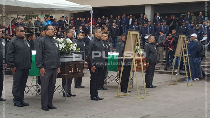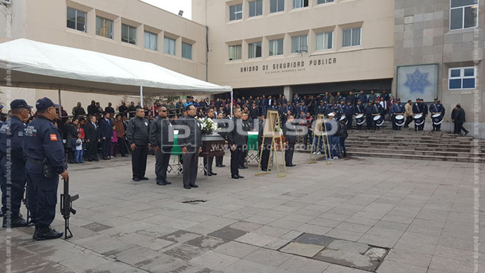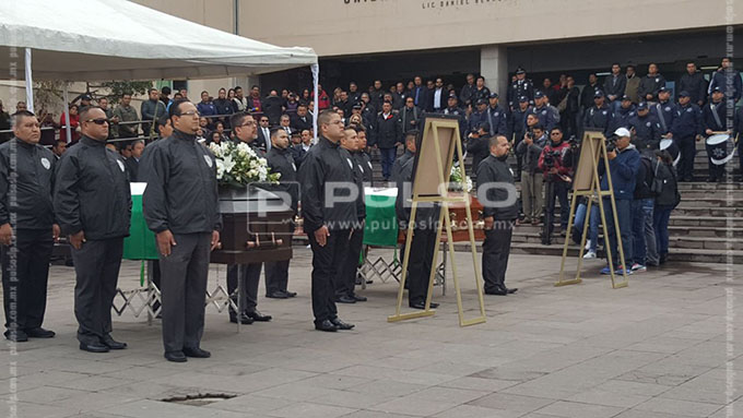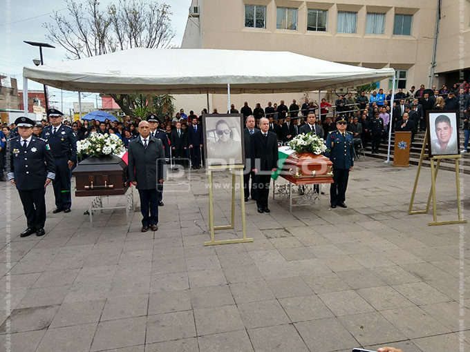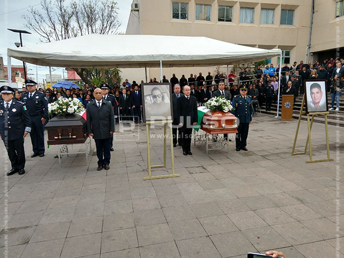 La ceremonia se realizó en la explanada del Edificio de Seguridad Pública, donde fueron colocados los féretros de Carlos y Ernesto, dos de los tres policías ultimados. Se informó que al parecer la familia de uno de los agentes se rehusó a acudir al homenaje.