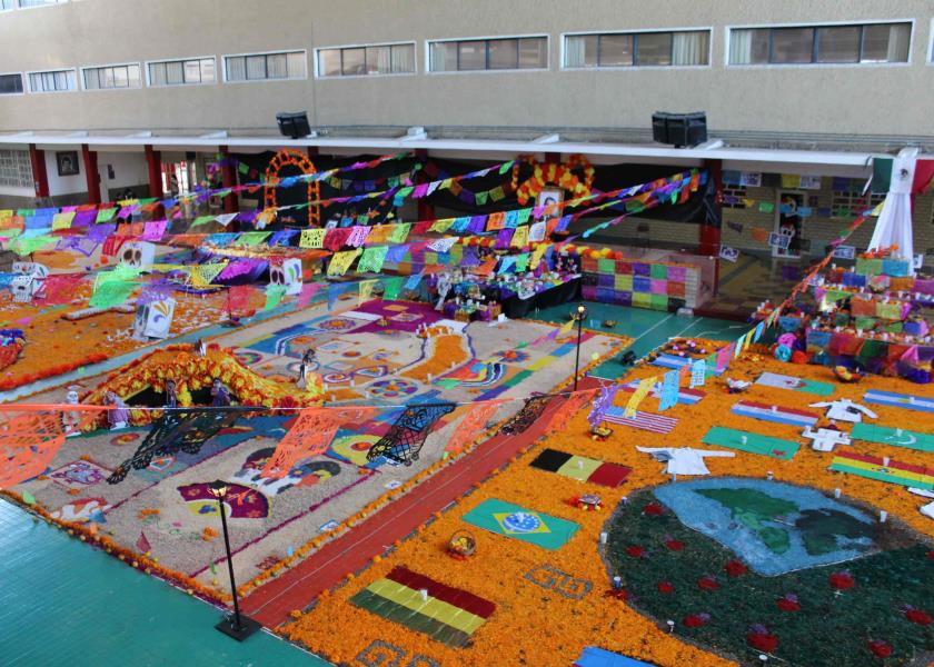 Este 28 de Octubre, alumnos, maestros y padres de familia montan altares de muertos monumentales en el Salesiano Carlos Gómez.