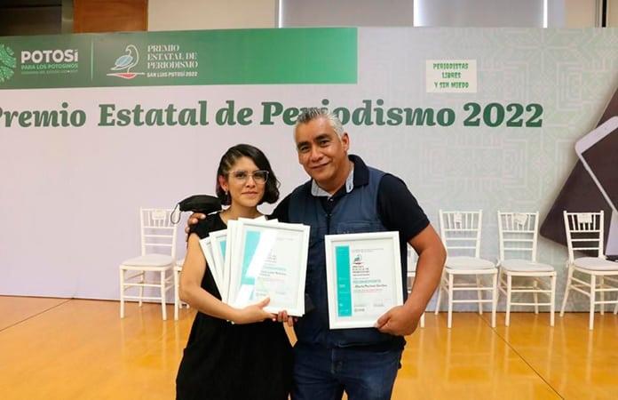 El gobernador Ricardo Gallardo Cardona entregó este martes los premios estatales de Periodismo. María Isabel Medrano Vázquez, de Pulso recibió cuatro galardones y una mención honorífica, mientras que Alberto Martínez Sánchez se hizo merecedor a una mención honorífica en la categoría de Fotografía.