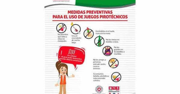 Entre las recomendaciones está evitar que menores de edad los detonen, usar un encendedor de mecha larga, colocar el cohete en el suelo y nunca en la mano, no arrojarlos cerca de autos, personas o animales, no aventarlos dentro de lotes baldíos o lugares con maleza.